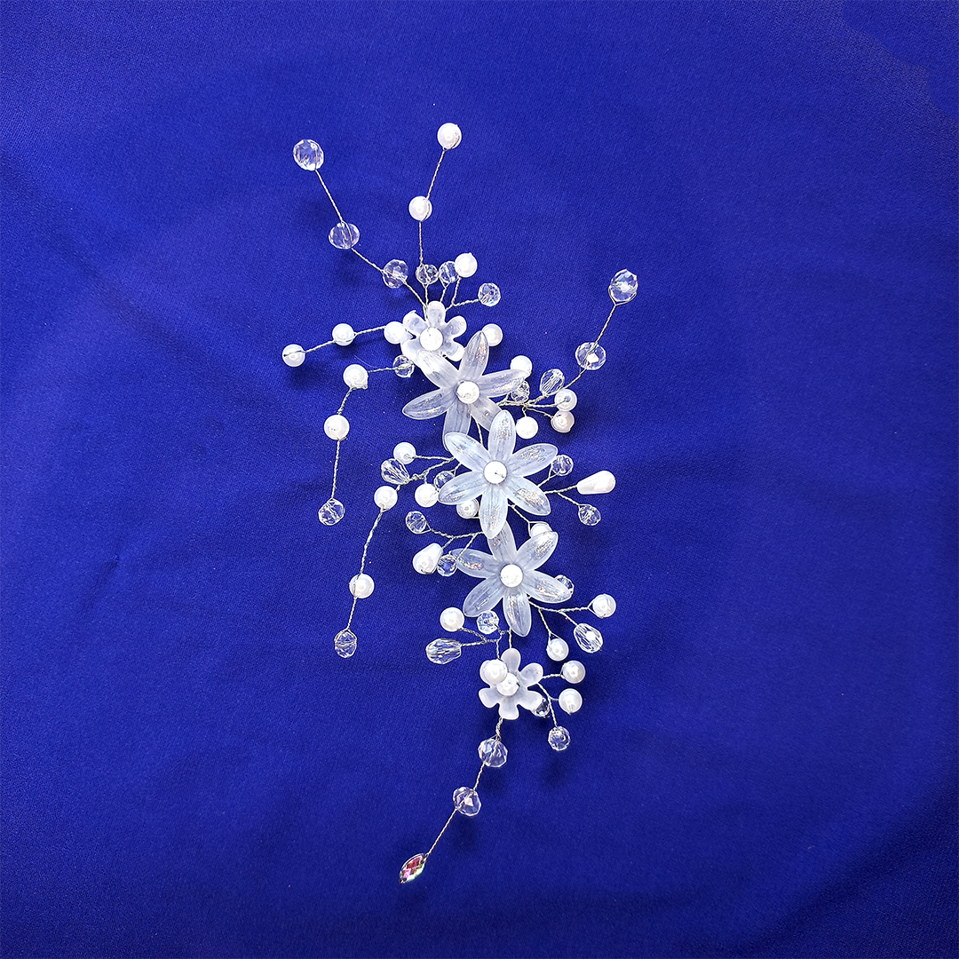 🔸 Ramillete de flores traslúcidas con mucho brillo por el nacarado de las perlas.