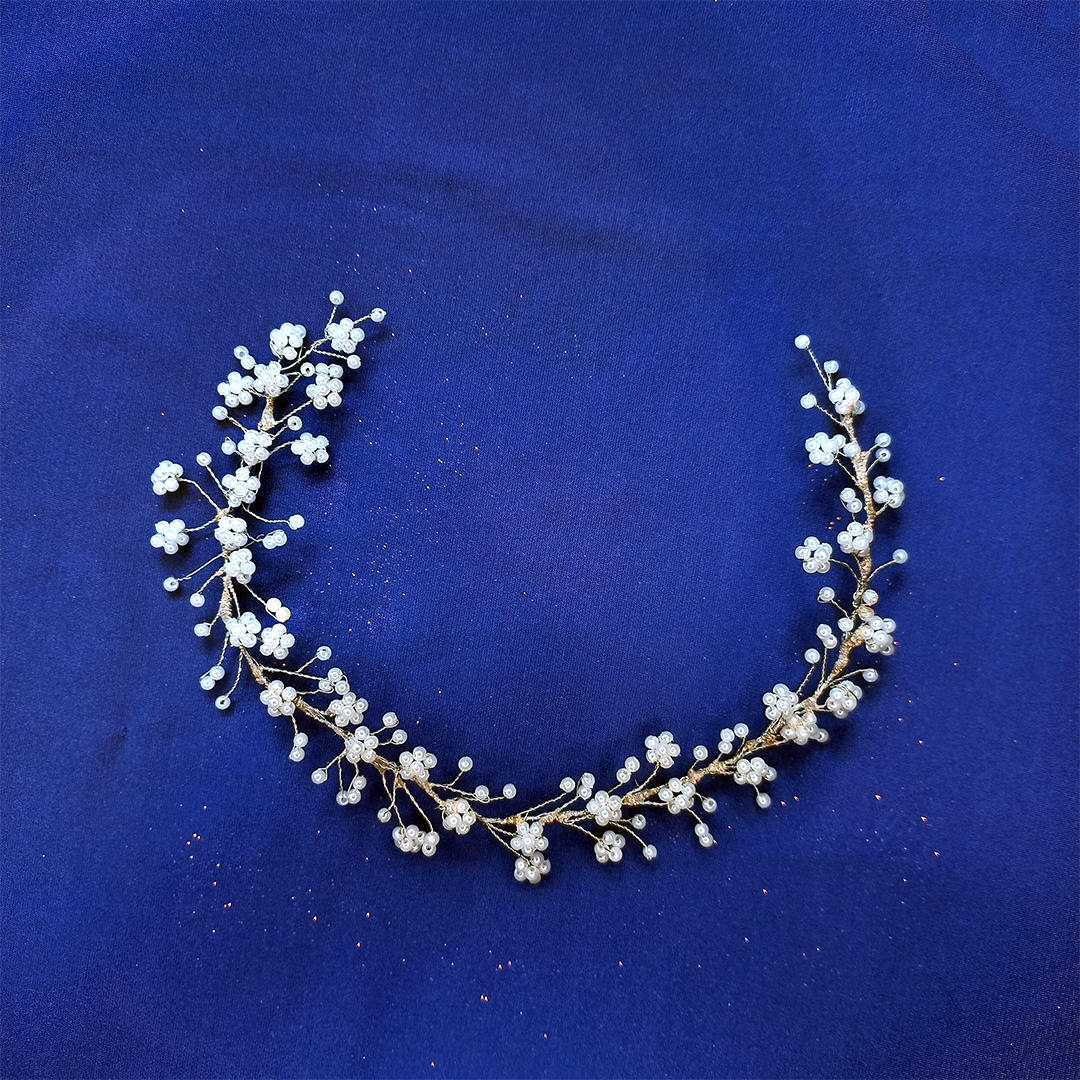 🔸 Pequeña coronita de micro perlas blancas.