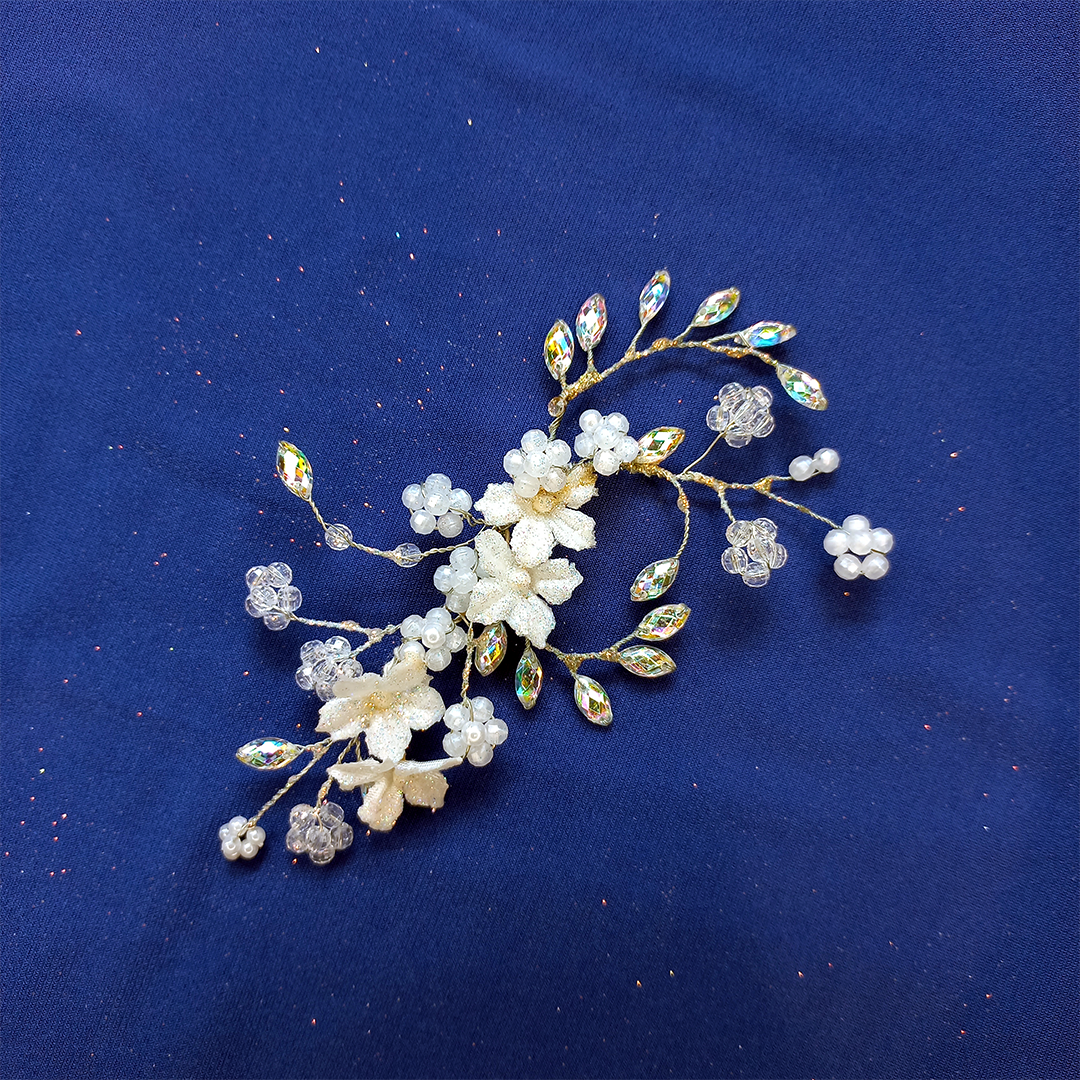 🔸 Pequeño arreglo para un lateral, diminutas diamantinas y florcitas blancas.