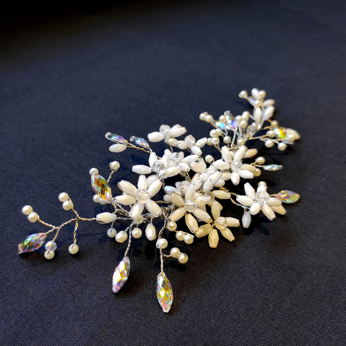 🔸 Color: blanco nacarado y diamantinas tornasoladas.