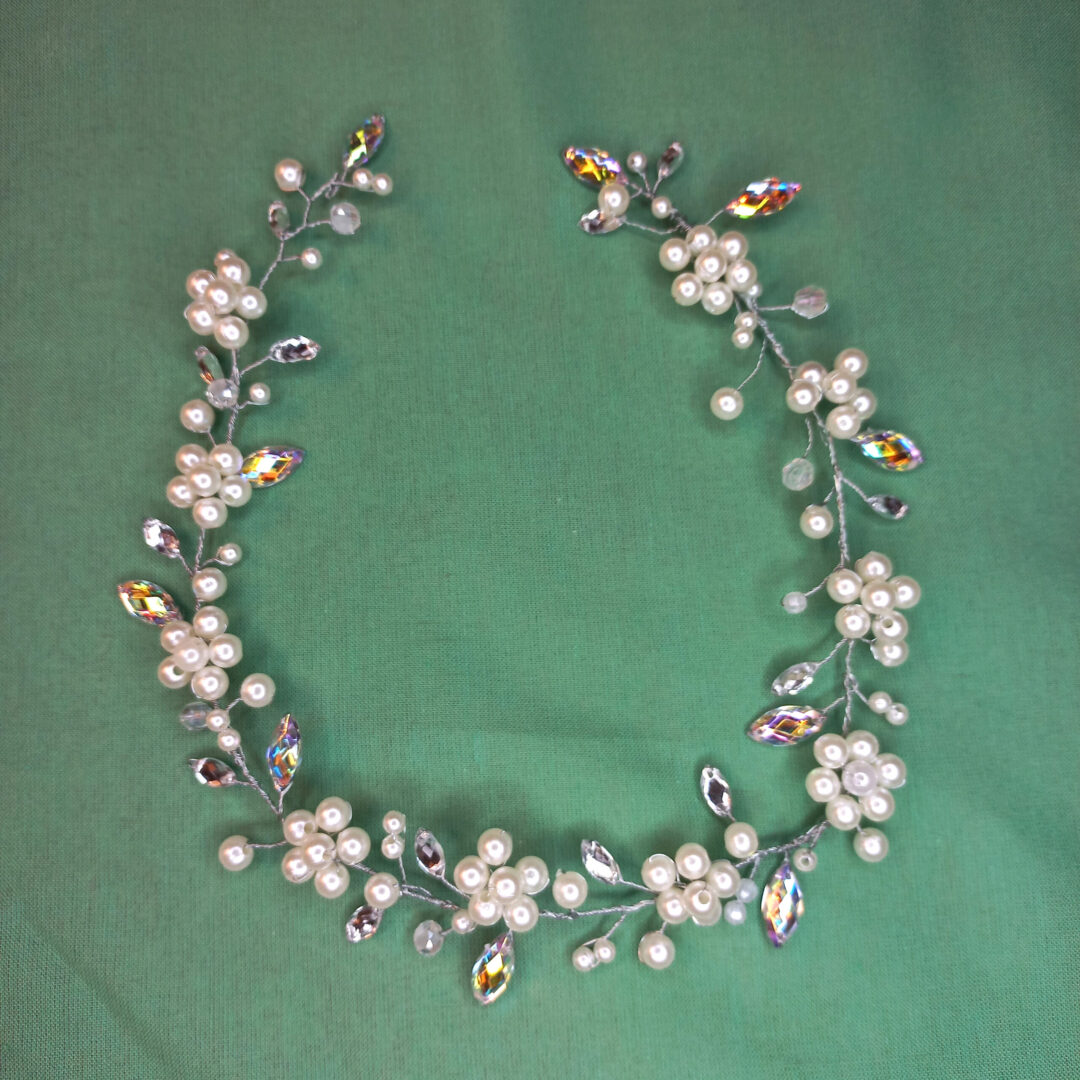 🔸 Tira de flores hechas de perlas blancas y diamantinas.