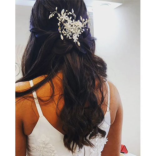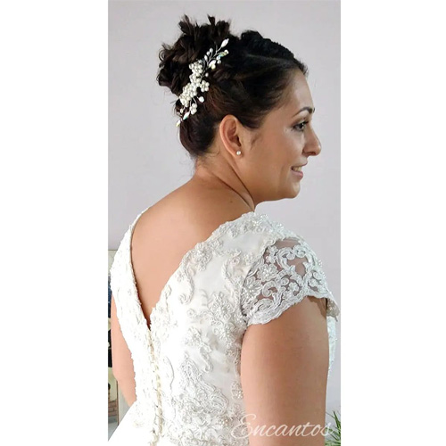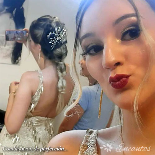 “Mi tocado quedó a la perfección con el peinado y el vestido!!!”